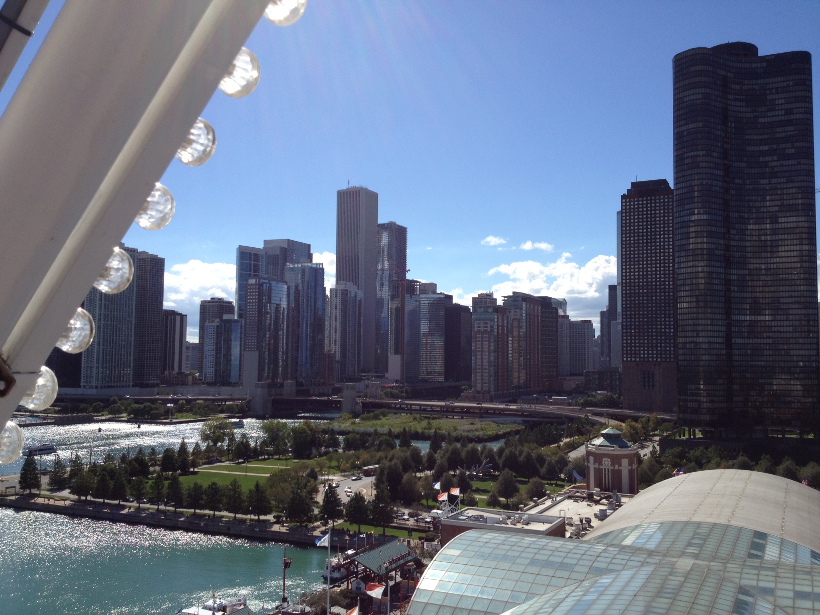 So, dann schnell zum Hotel, auschecken und die Koffer dort zwischenlagern und dann machten wir uns auf den Weg zum Navypier. Das war ein weiter Fußmarsch, aber es hat sich gelohnt. Das Navypier ist süß. Dort gibt es jede Menge kleiner Läden und Restaurants, man hat einen tollen Blick auf die Skyline von Chicago und kann dort Riesenrad fahren. Das haben wir uns natürlich nicht entgehen lassen. ; ) Außerdem war dort ein Stand von Samsung in dem das neue Galaxy S III beworben wurde. Man musste 4 Stationen wahrnehmen und konnte dann an einer Verlosung teilnehmen, bei der man ein Galaxy S III gewinnen konnte. Auch das haben wir uns natürlich nicht entgehen lassen. In Zweiergruppen mussten wir die Stationen abfrühstücken. Erst wurde uns kurz was über das Handy erzählt. Station 2 war eine kurze Vorführung, wie ein Datenübertragungssystem funktioniert mit dem Beispiel „Eis bestellen“ und das Eis, das wir uns bestellt haben, haben wir auch tatsächlich bekommen. Yummy. : ) Station 3 war zur Kamera des S III. Dort wurden innerhalb von 4 Sekunden 20 Fotos geschossen und wir sollten möglichst lustige Dinge tun. Station 4 war dann, dass wir uns die Fotos direkt von einem Tablet-PC per Mail zusenden konnten. Bei der Verlosung haben wir dann natürlich kein Handy gewonnen, dafür aber Trostpakete mit 2 T-Shirts (Ja, ich wollte schon immer mit einem T-Shirt rumlaufen auf dem steht „The next big thing has arrived“ : D) 20 Labellos, Sonnencremes und komischen Sportflaschen. Egal, hat Spaß gemacht und ich muss nie wieder Labello kaufen. Nach dem Navypier sind wir dann noch kurz shoppen gewesen und dann mussten wir auch schon zum Hotel unsere Koffer holen und dann ab zur Bahn. Die Fahrt war wieder ok und wir kamen völlig müde in Effingham an, stiegen ins Auto und fuhren die letzte Strecke nach Olney. Dort haben David und ich noch schnell Fotos vom Wochenende etc. getauscht und sind dann schlafen gegangen.