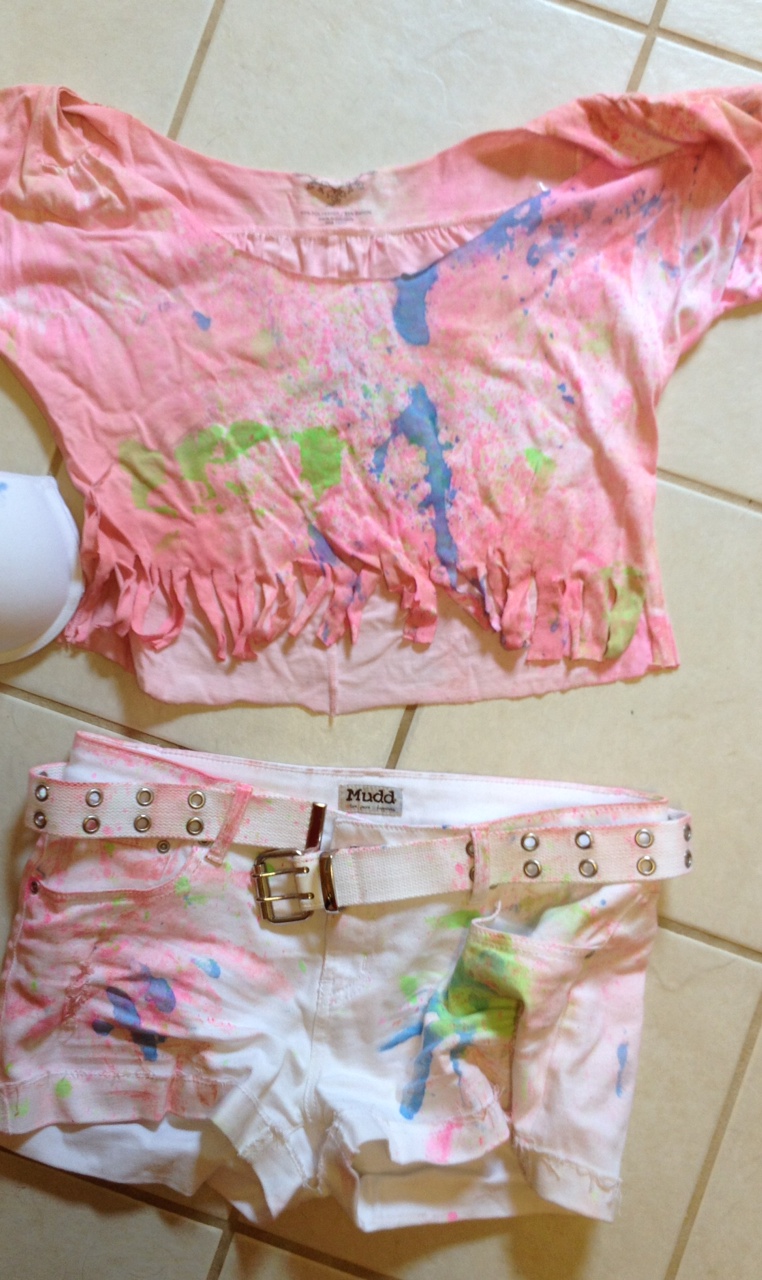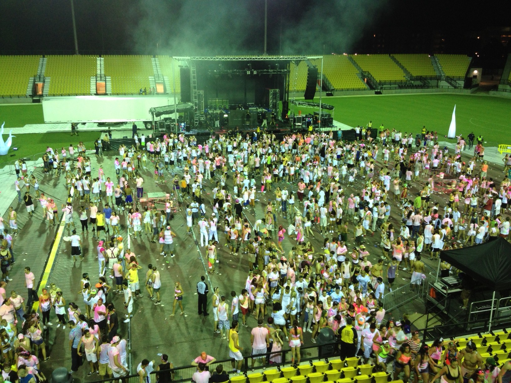 Dann kam der Freitag und der sollte ganz im Zeichen der abendlichen Party stehen. Um das Konzept einmal kurz zu erläutern: Es handelt sich bei „Life in color“ (oder auch „Dayglow“) um eine Party, die im Prinzip ein Konzert von verschiedenen DJ’s ist. Hauptsächlich werden hier Elektro- und R’n’B Musik gemixt und alle sollen mehr oder weniger in weiß kommen, da im Laufe des Abends Farbkanonen abgeschossen werden und es wird mit einer Art kleinem Feuerwehrschlauch Farbe ins Publikum geschossen. Außerdem wird ganz viel mit Licht gespielt, es gibt eine Lasershow und diverse Artisten auf der Bühne (Trampolin, Rönrad etc)