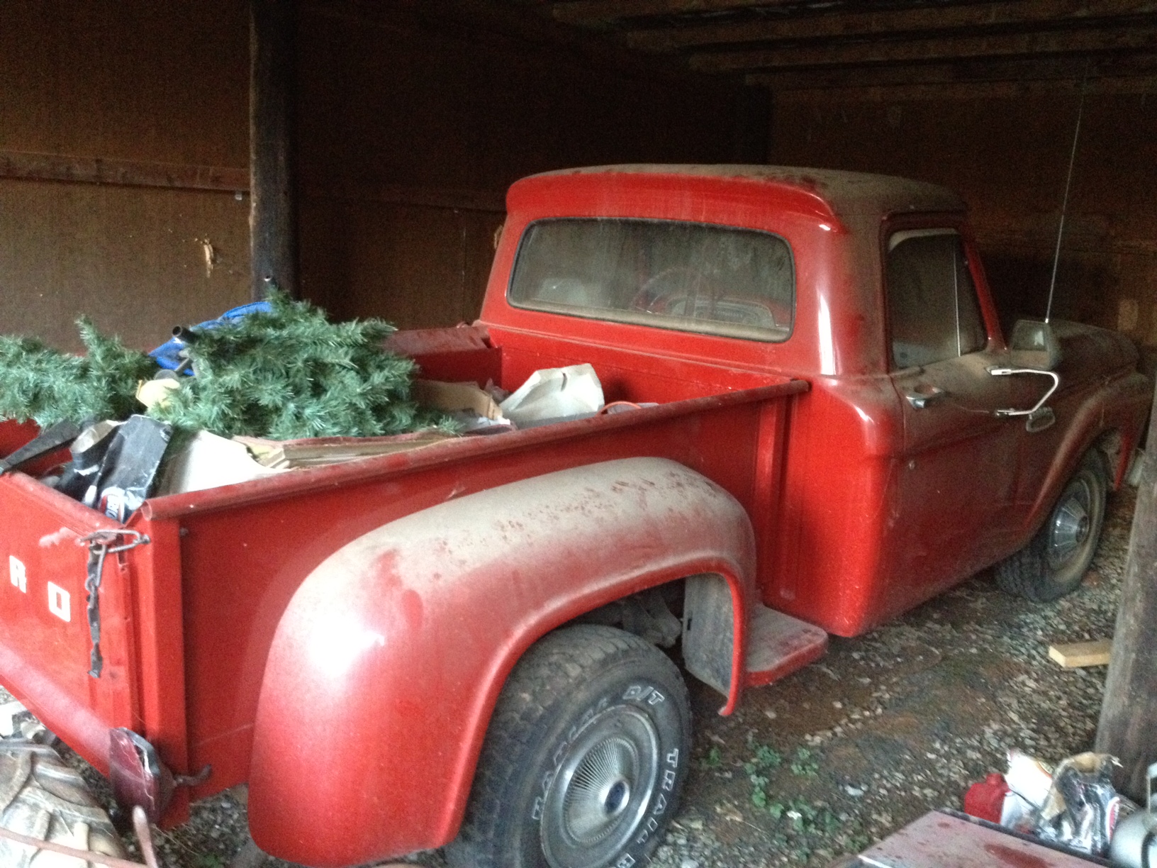 Oh ein Highlight an diesem Tag noch: Ich habe im Carport bei Dustins Eltern einen tollen 54er Ford 100 Pick-up gesehen -in knallrot! Auf meine Frage nach warum das Auto so verstaubt sei wurde mir erzählt, dass es frisch restauriert wurde, aber dass Dustins Bruder ihn nicht haben will. Und Dustin selbst hat schon einen Oldtimer. Jetzt steht das Schätzchen da seit 3 Jahren rum. Wo es doch eigentlich unter meinen Hintern gehört. ; ) Dustins Dad und ich haben uns lange unterhalten und er überlegt, den Pick-up nochmal aufzufrischen und dann mit mir in die Verhandlungen zu gehen. : D Man darf gespannt sein. (Er meinte: „Auf jeden Fall werde ich ihn auf der Weihnachtsparade in Catersville rausholen, einen riesen Tannenbaum auf die Ladefläche packen und mit einem Trecker ziehen. Und ich verspreche dir: Du darfst auf dem Fahrersitz sitzen und winken und Süßigkeiten werfen.“ Ich: „Wooow, dann bin ich ein echter Weihnachtsengel!?“ Er: „Nee, dann bist du ein echter Weihnachtsredneck.“ ; ))