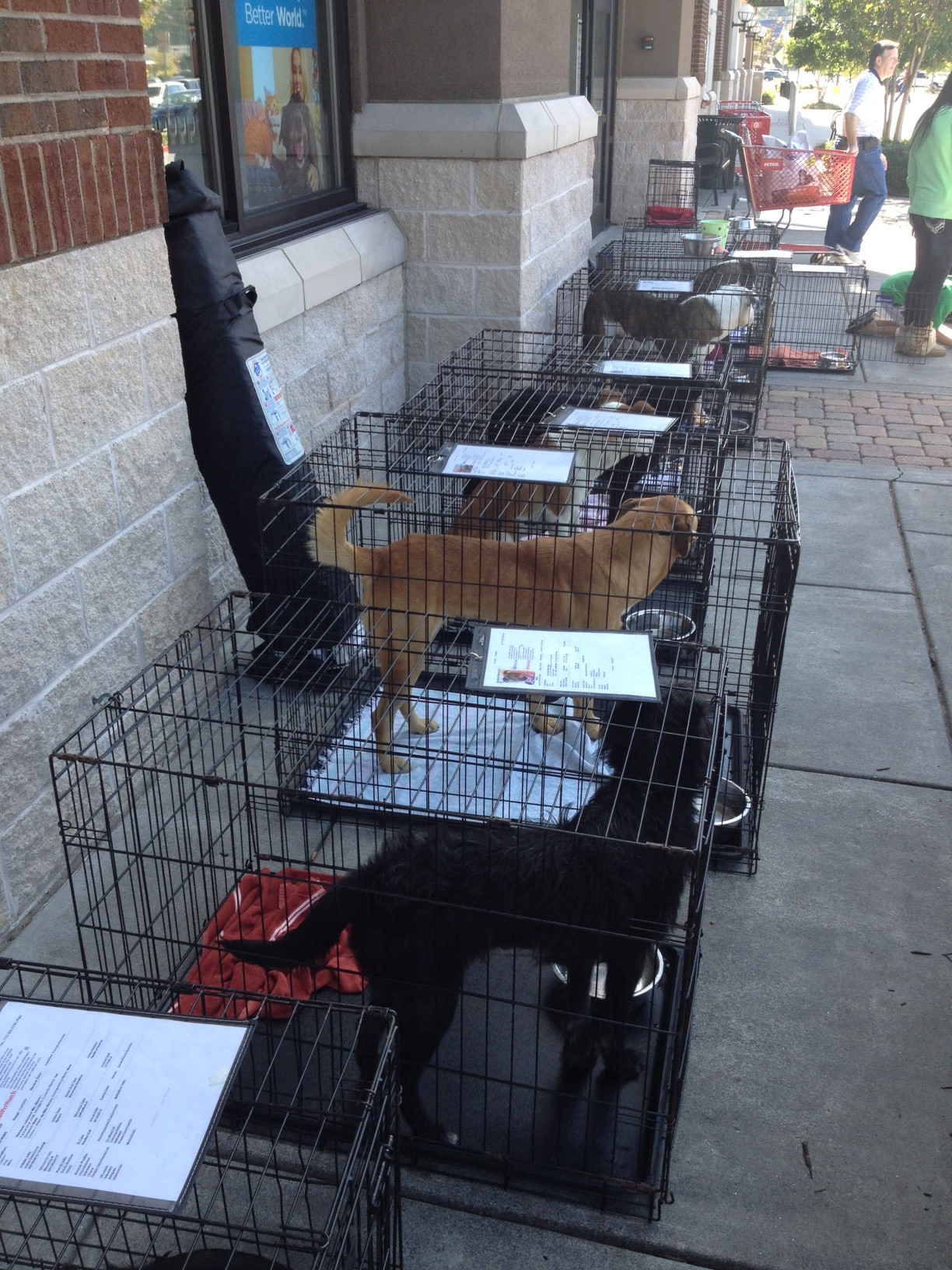 Am Samstag hatte ich meinen ersten Tag bei der Pet Adoption. Ich habe also ausgeschlafen, mich fertig gemacht und bin dann gleich zur Tierhandlung meines Vertrauens gefahren. : ) Dort angekommen hatte ich erstmal einen Moment Zeit mir die ganzen anderen Tiere dort anzusehen, bis der Transporter mit den Hunden ankam. Wir haben die Hunde ausgeladen, sind eine kleine Runde mit ihnen gelaufen und haben sie dann in ihren Käfig gesperrt. Dieses Mal waren 9 Hunde da, eigentlich sollten es 10 sein aber einer wurde direkt am Shelter beim Verladen in den Transporter adoptiert. Das hört man doch gerne! Die Hunde waren sehr süß und die meisten auch noch sehr jung. Meine Aufgabe bestand dann für die 5 Stunden meiner Arbeit darin, die Hunde von Zeit zu Zeit aus dem Käfig zu holen und mit ihnen zu laufen, ihnen Wasser zu geben und den Interessenten Informationen über die Hunde zu geben. Ein weiterer Hund wurde an diesem Tag adoptiert, also ein erfolgreicher Tag. Als ich um halb 5 wieder zu Hause war, war ich aber auch wirklich geschafft, denn die meisten der jungen Hunde sind noch sehr wild, nicht so gut erzogen und doch schon ziemlich groß und muskulös, sodass ich manchmal mein ganzes Körpergewicht zum Einsatz bringen musste um die Strecke unseres Spazierganges zu bestimmen. ; )