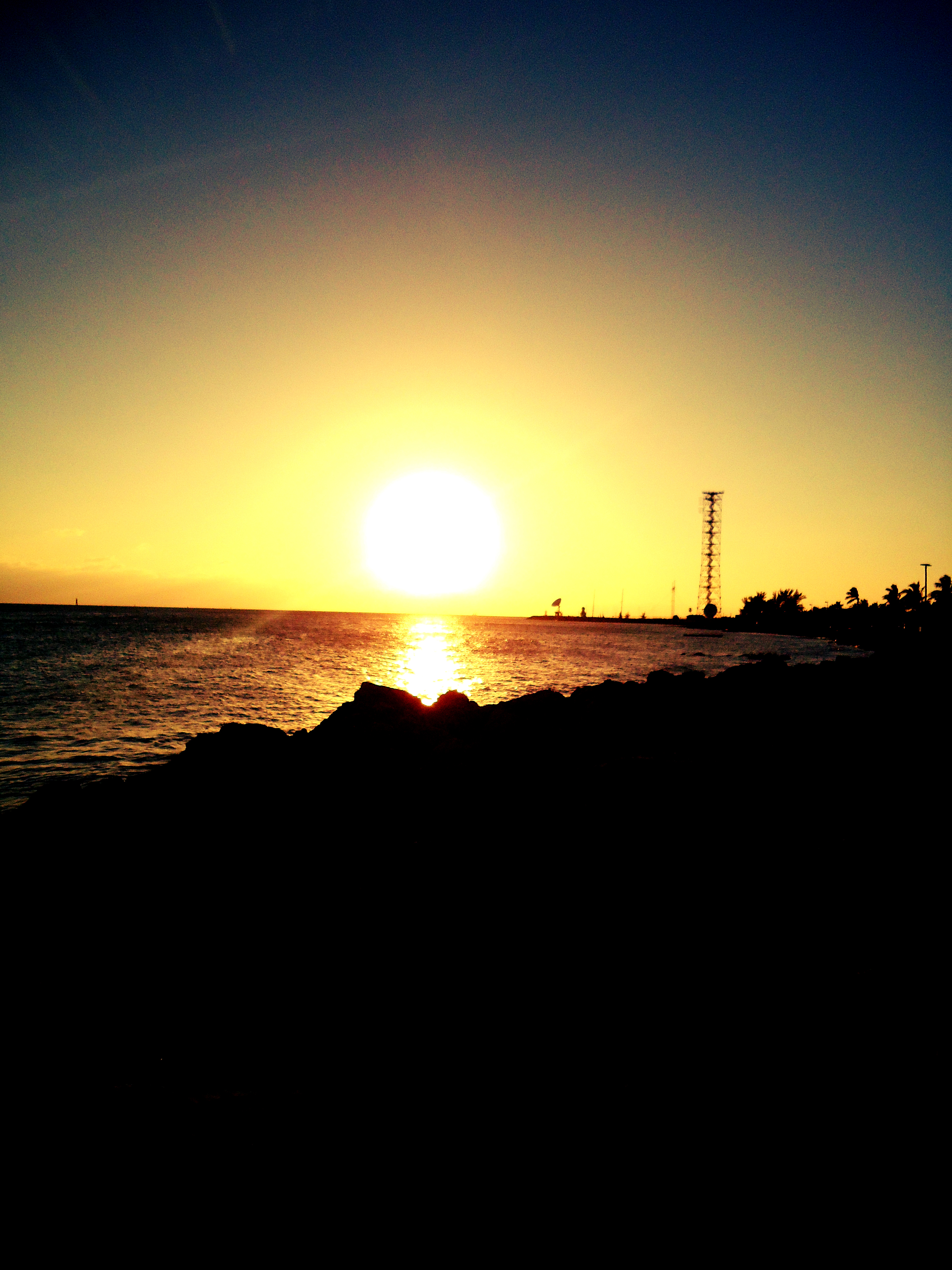 Am Samstag haben wir (also die anderen fünf Verrückten und ich) uns auf den Weg zu den Everglades gemacht, um ein Krokodile zu “streicheln”… Natürlich durfte die berühmte Propellerbootstour nicht fehlen und so sind ca. eine Stunde durch den Sumpf gecruist! Danach ging es zurück nach Miami, wo wir dann auf’s nächste Boot gestiegen sind, um dem Sonnenuntergang entgegen zufahren! Atemberaubend, sag ich euch!!!! Die Skyline in front und die Sonne im Rücken – ein einmaliges Bild… Am Sonntag konnte ich mich dann endlich wieder meiner Leidenschaft zuwenden – dem Autofahren! Von Miami aus ging es noch weiter südlich. Um genau zu sein, zum südlichsten Punkt der USA -Key West. Die kleine Hafenstadt mit ihren urigen Cafés and der malerischen Promenade hatte mich vor zwei Jahren schon in ihren Bann gezogen! Aber nicht nur die Stadt itself sondern auch der Weg dort hin, ist unglaublich schön. Ihr dürft euch gleich selbst ein Bild davon machen…